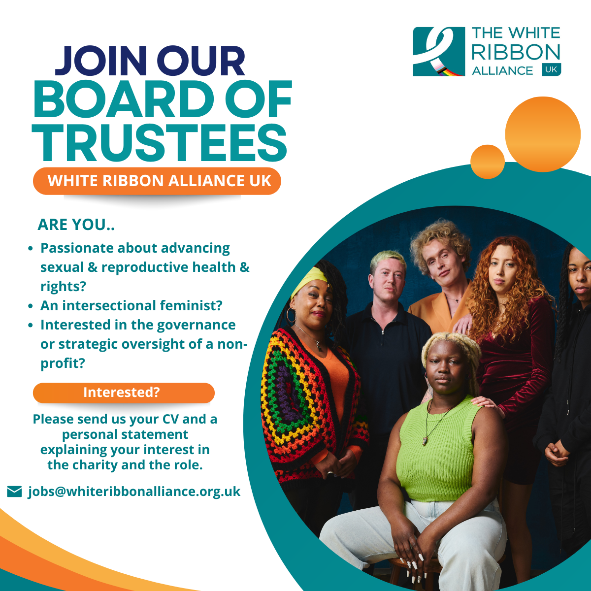 - Why you want to volunteer with White Ribbon Alliance UK as a Trustee.